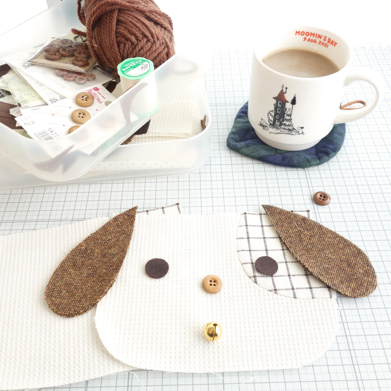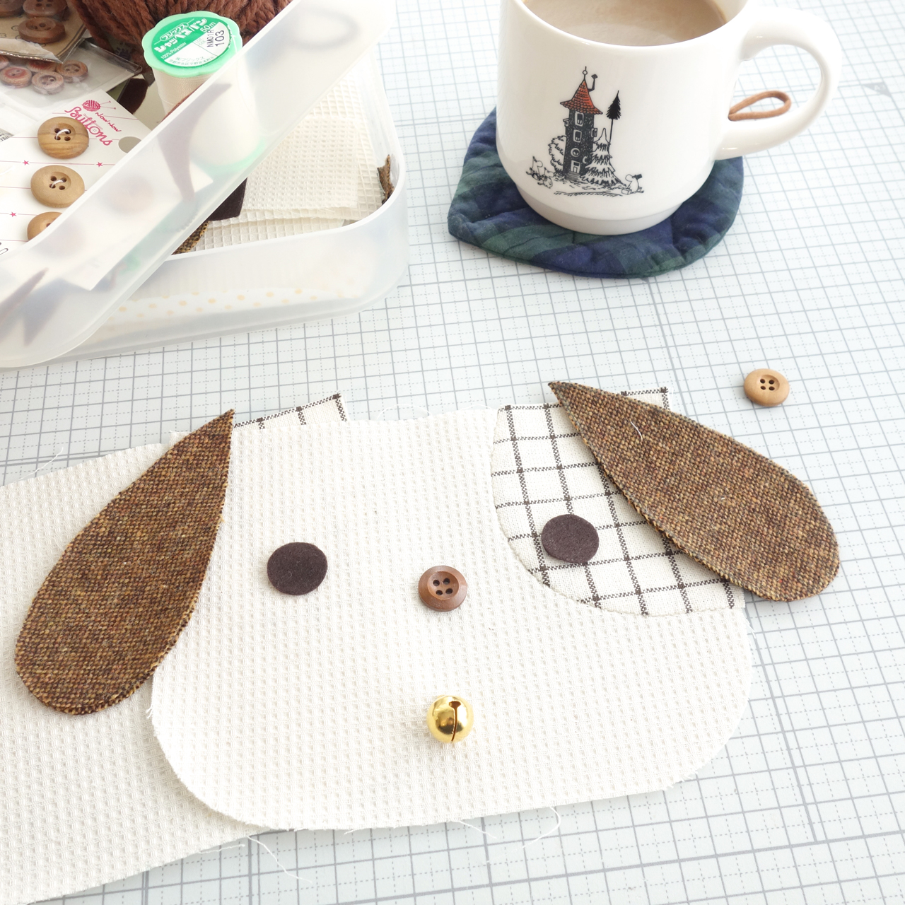 鼻のボタンをどっちにしようか…ずーっと迷ってました🐶💭